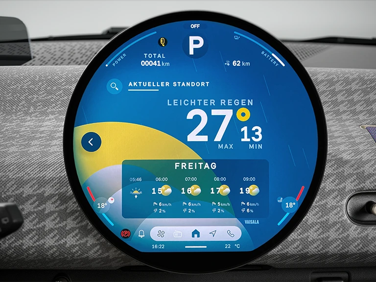 The iconic, 240 mm centre display in high-quality glass is your instrument cluster and onboard infotainment and assistance hub. It also happens to be the world’s first-ever circular display.